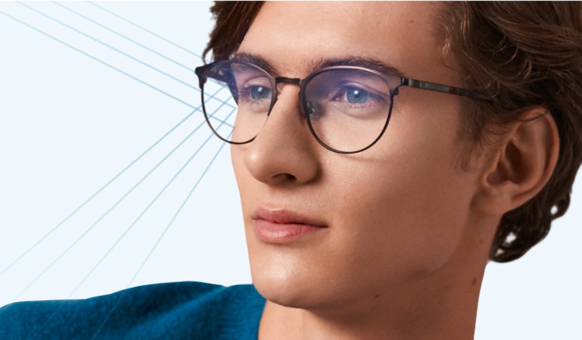 Blu Essential lenses to shield your eyes from the harmful blue light of digital devices. Blu blocking technology has special reflective coating that blocks 90%* of harmful 410 nm blue light from digital screens and protects the light-sensitive retina of the eye from damage.